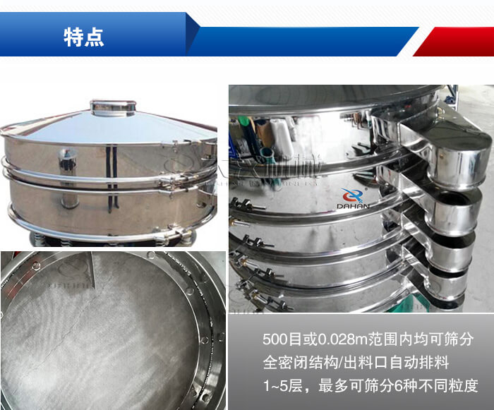 【優(yōu)勢(shì)】:①304/316不銹鋼材質(zhì)拋光而成,符合醫(yī)藥行業(yè)衛(wèi)生標(biāo)準(zhǔn);②500目或0.028m范圍內(nèi)均可篩分,5微米的液體或漿狀物料均可過(guò)濾;③全密閉結(jié)構(gòu),防止粉塵溢散,液體飛濺
