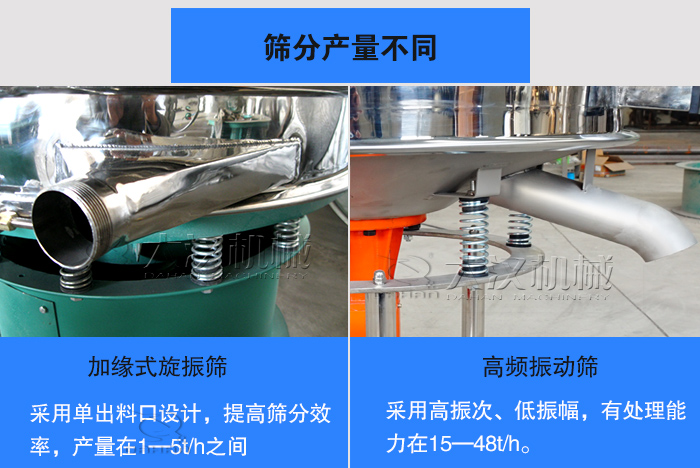 加緣式旋振篩采用單出料口設計,有效延長物料在篩面上的篩時間,提高篩分效率,產量在1—5t/h之間。
