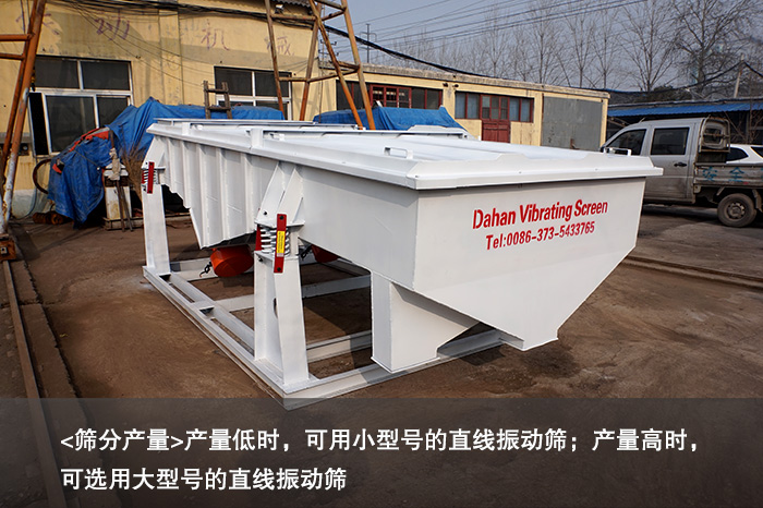 產量低時,可選用小型號的直線振動篩;產量高時,可選用大型號的直線振動篩,如電機功率也需要根據螺帽分級直線振動篩產量大小來選擇合適的型號。